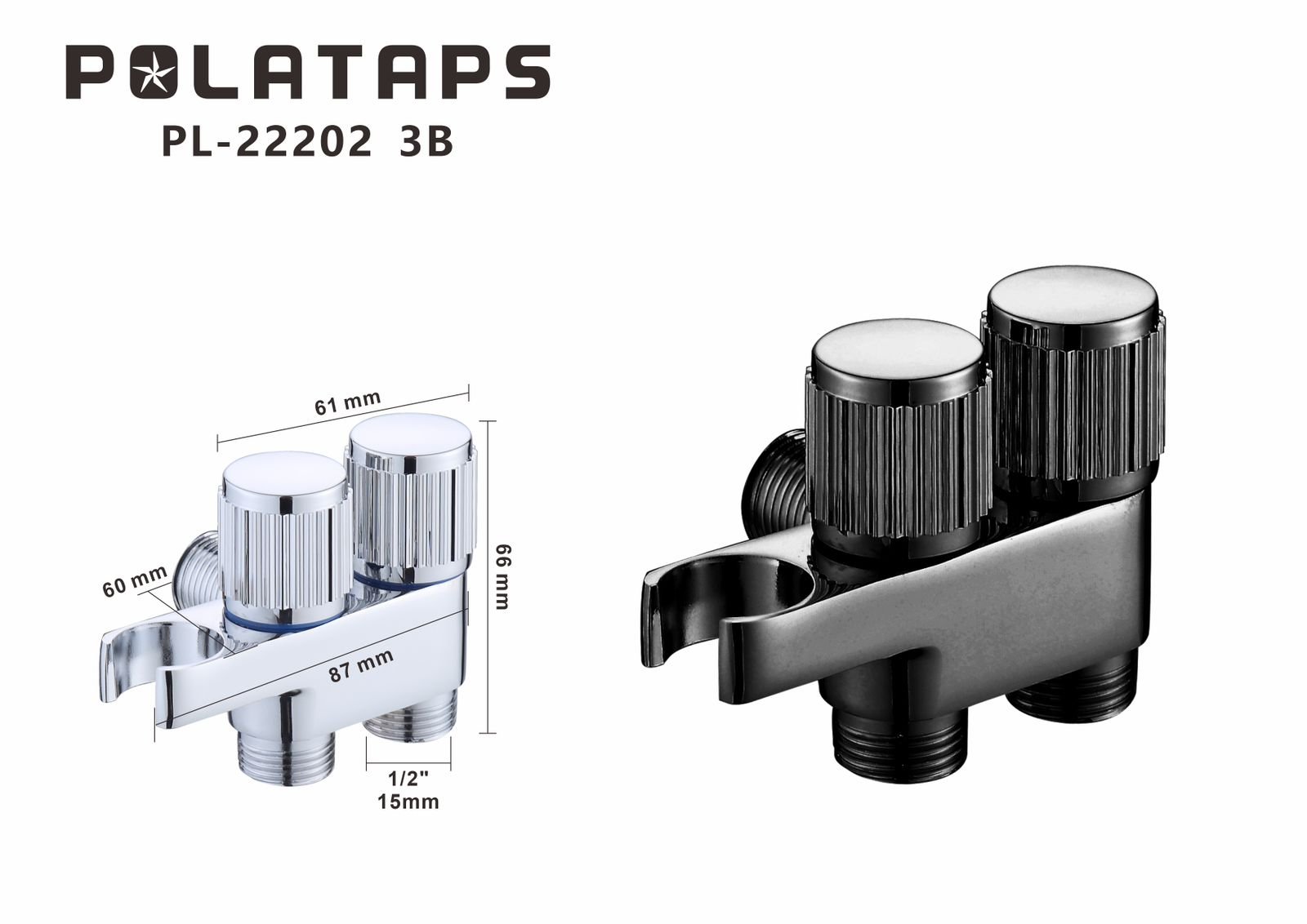 محبس زاوية دبل مع شطاف كروم  PL-22202 IS شد24 شد100