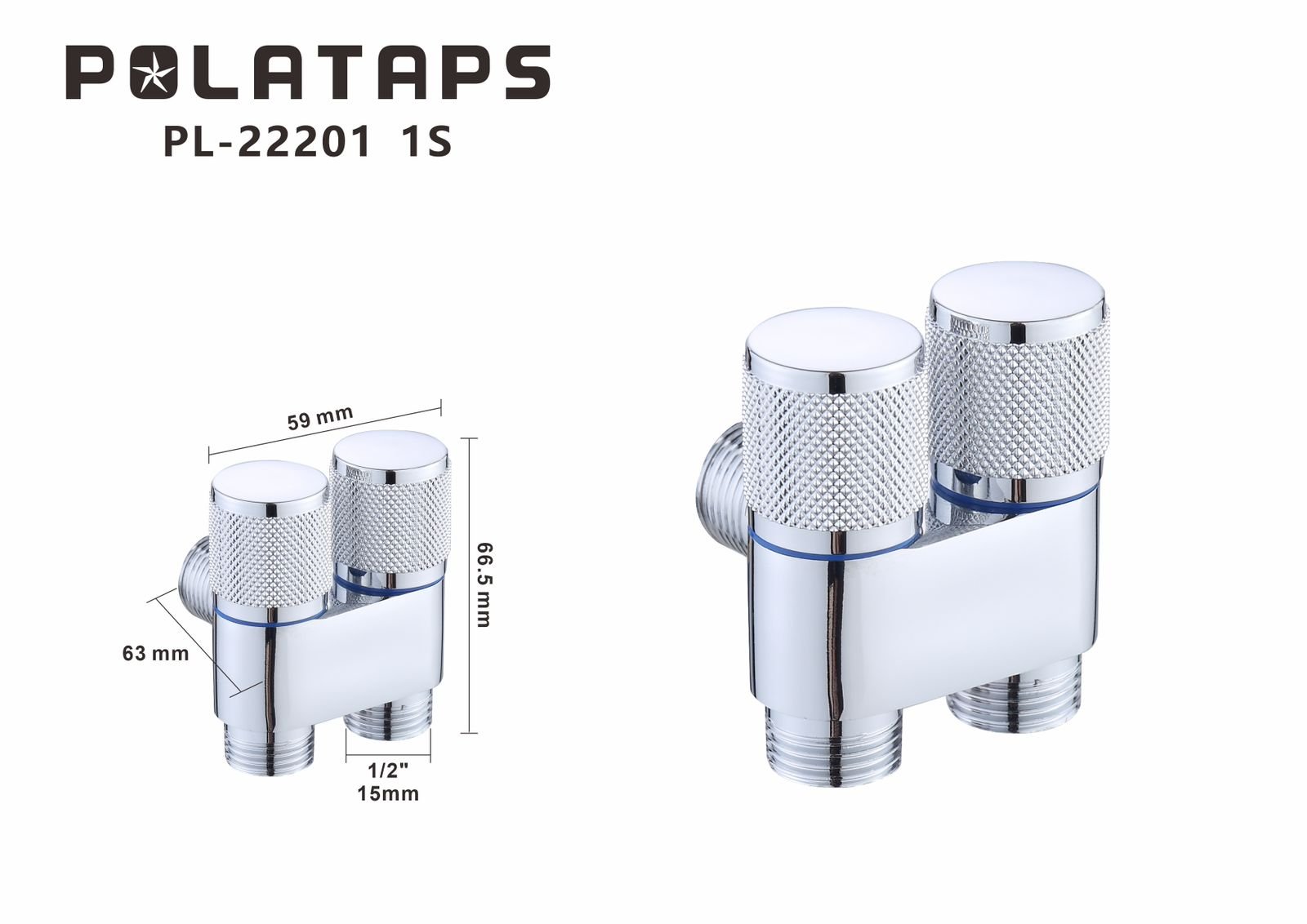 محبس زاوية دبل مع شطاف كروم PL-22201 IS شد24 شد100
